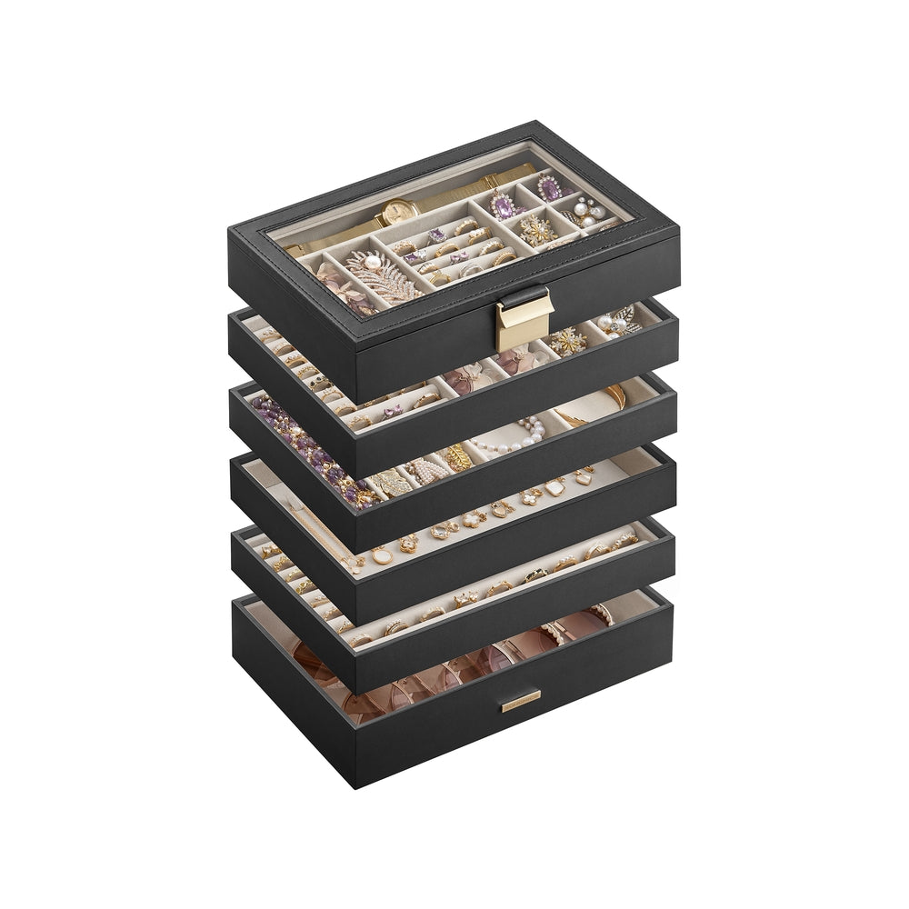 Boîte à bijoux empilable avec couvercle en verre transparent Noir d'encre