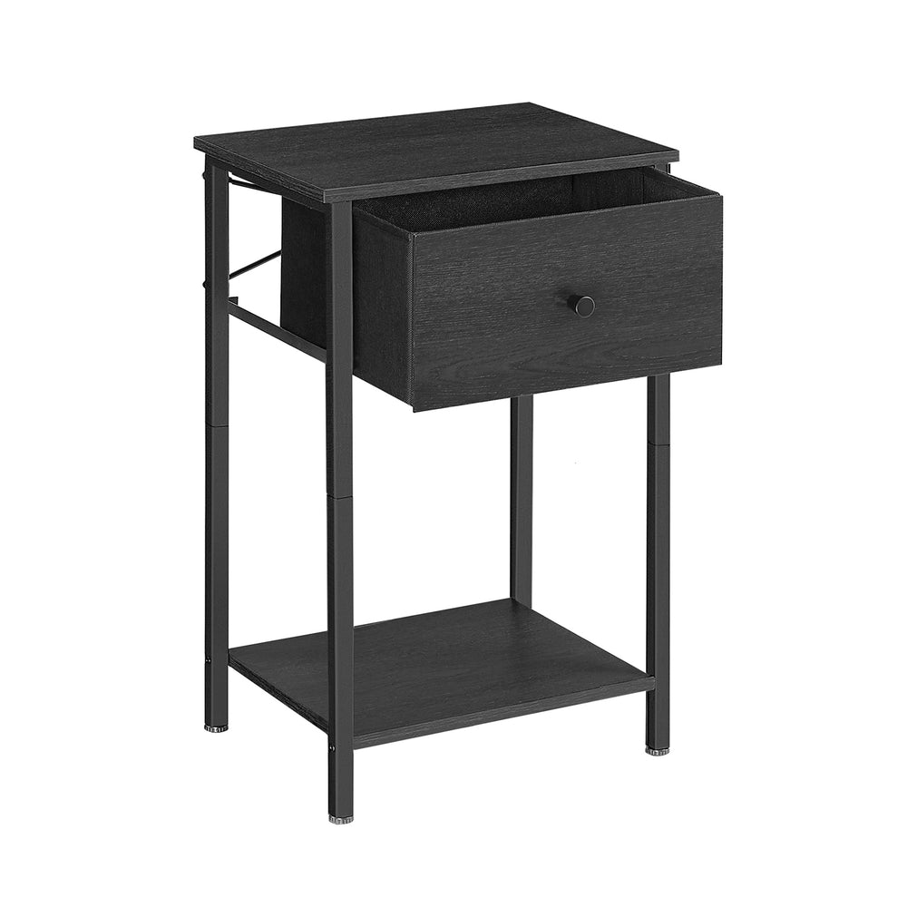 Table de chevet avec tiroir en tissu et étagère marron boisé