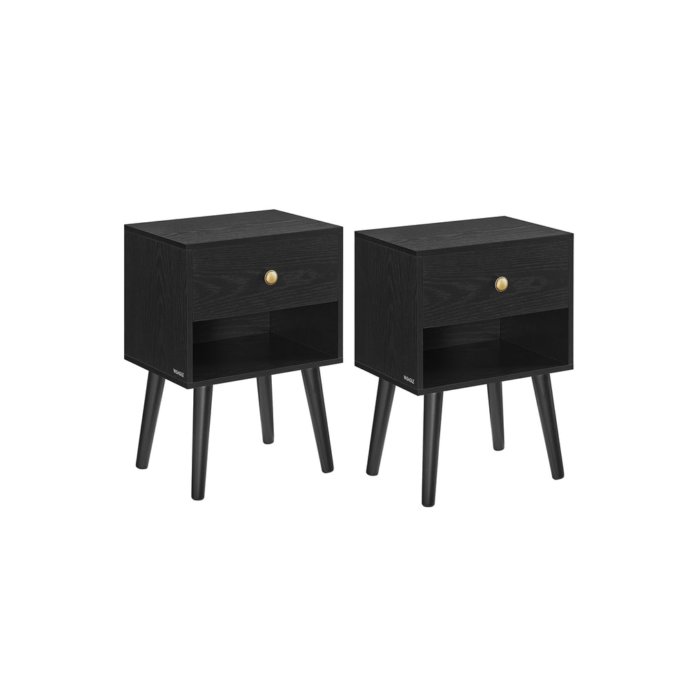 Tables de chevet avec tiroir et compartiment ouvert pieds en bois noir boisé