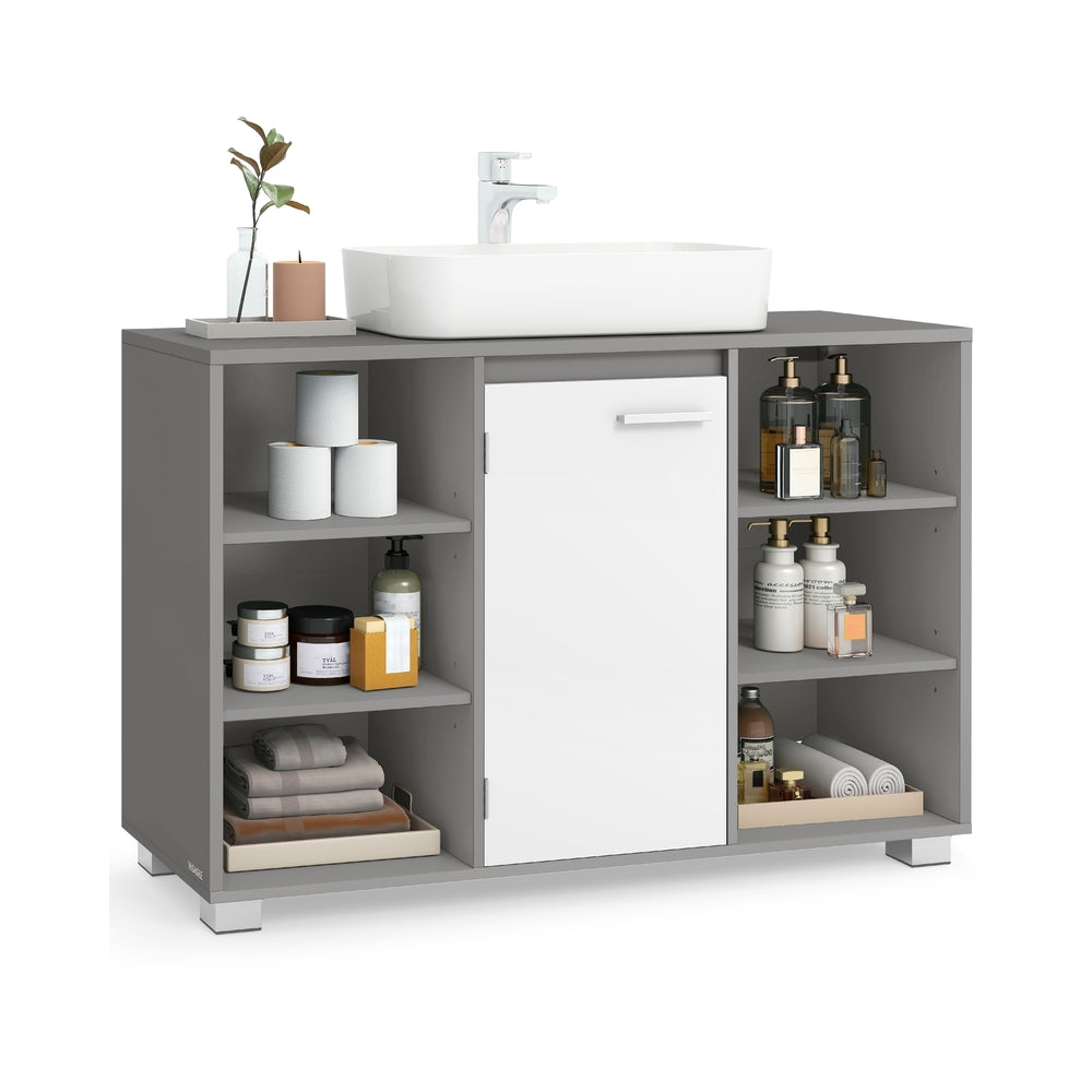 Meuble sous lavabo avec étagères réglables pratiques Gris Tourterelle et Blanc Nuage