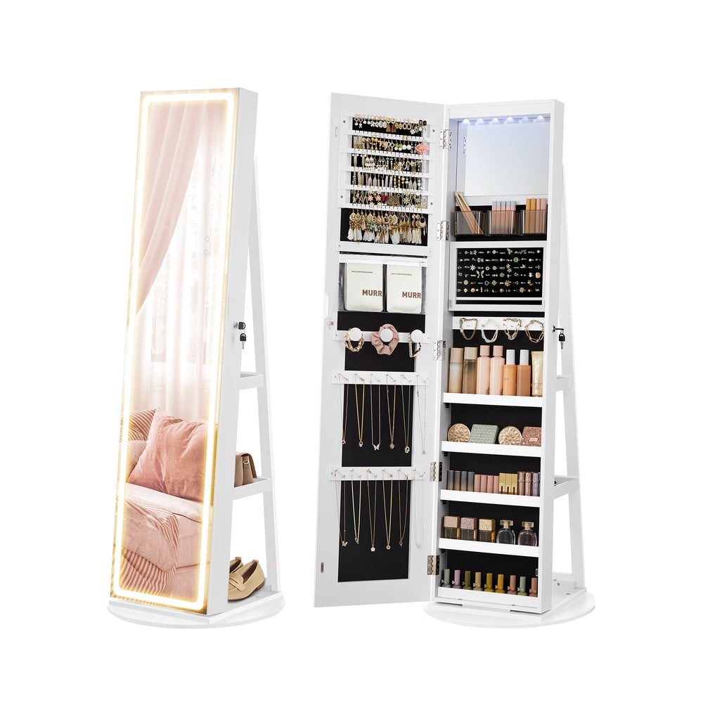 Armoire à bijoux sur pied avec miroir et éclairage réglable