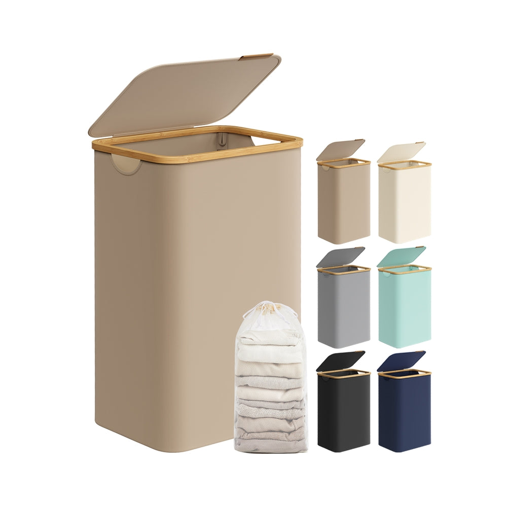 Panier à linge mince avec couvercle 65L gris tourterelle