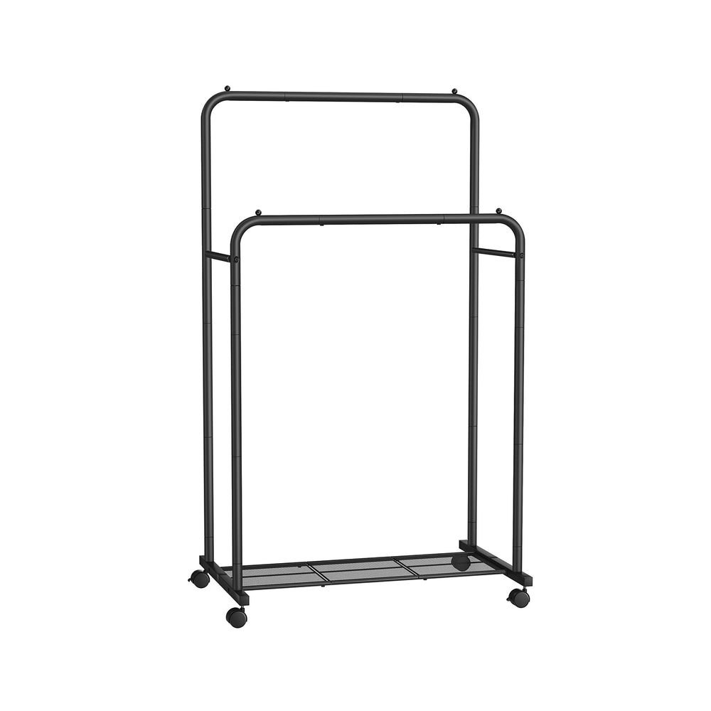 Porte-vêtement en métal 2 barres avec roulettes noir