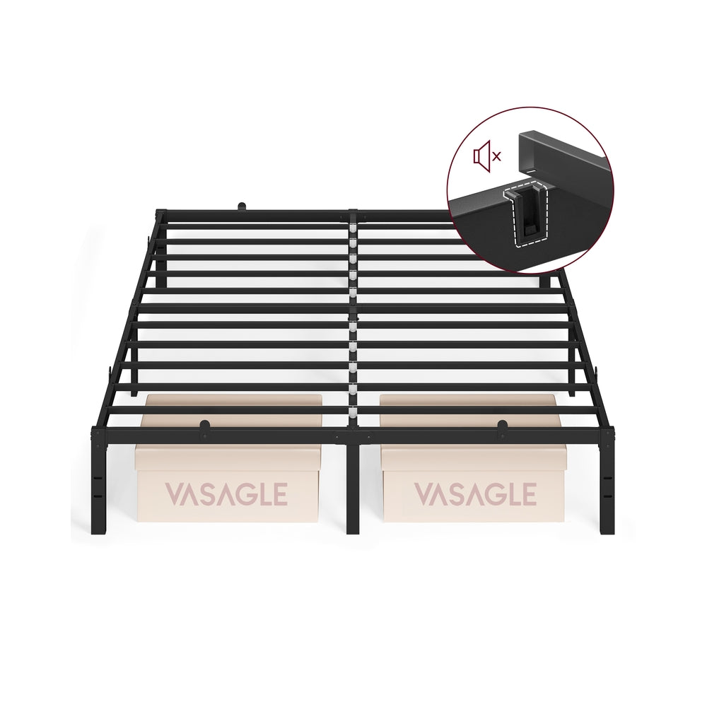 VASAGLE Cadre de lit en métal avec sommier et rangement dessous