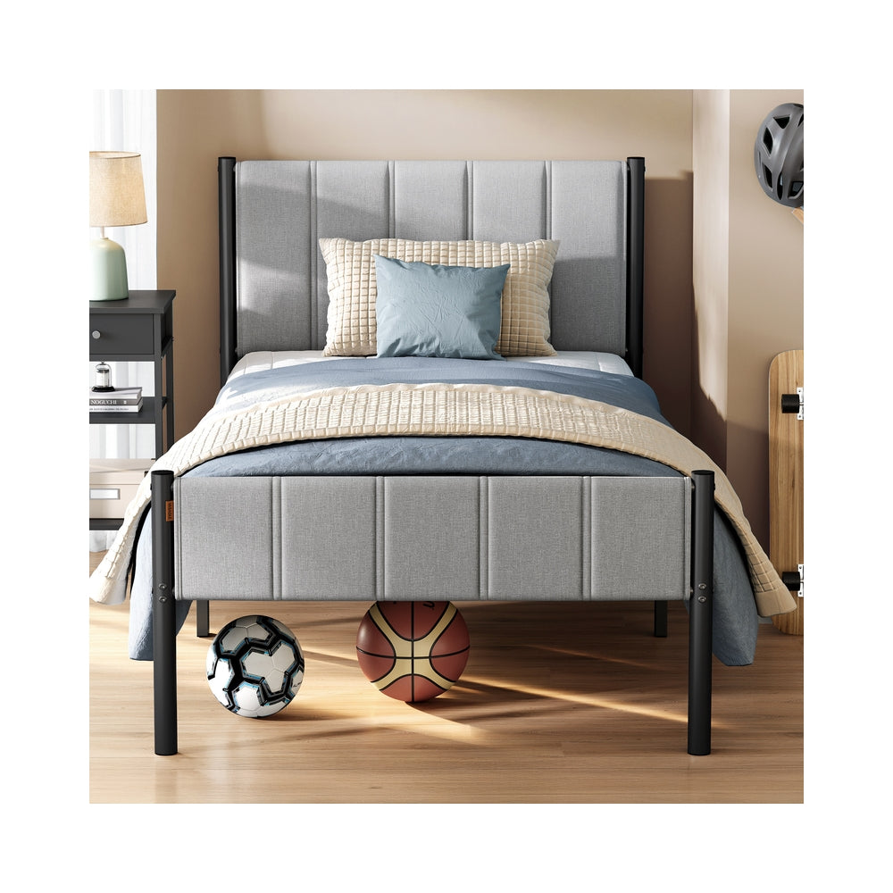 Cadre de lit simple avec tête rembourrée en acier robuste
