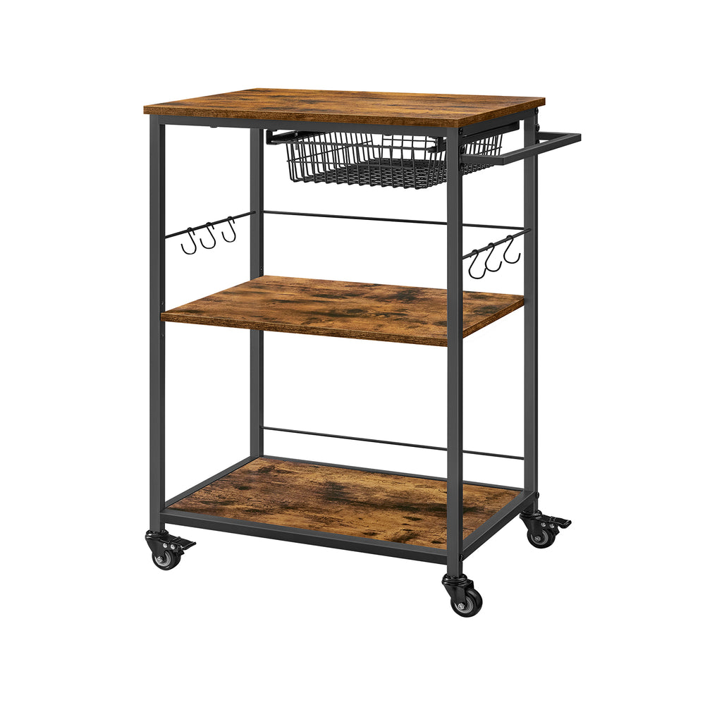 Keukenwagen op 3 niveaus met mand en rustieke bruine haken