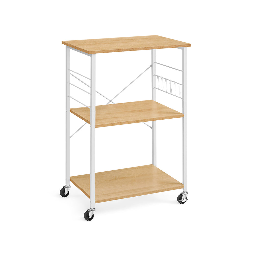 3-laags verrijdbaar keukenrek met 6 haken Goud Eiken en Wolkenwit