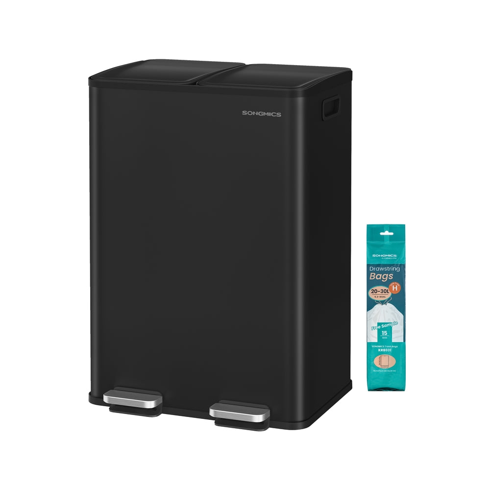 Poubelle de cuisine à pédale à double compartiment Noir d’Encre