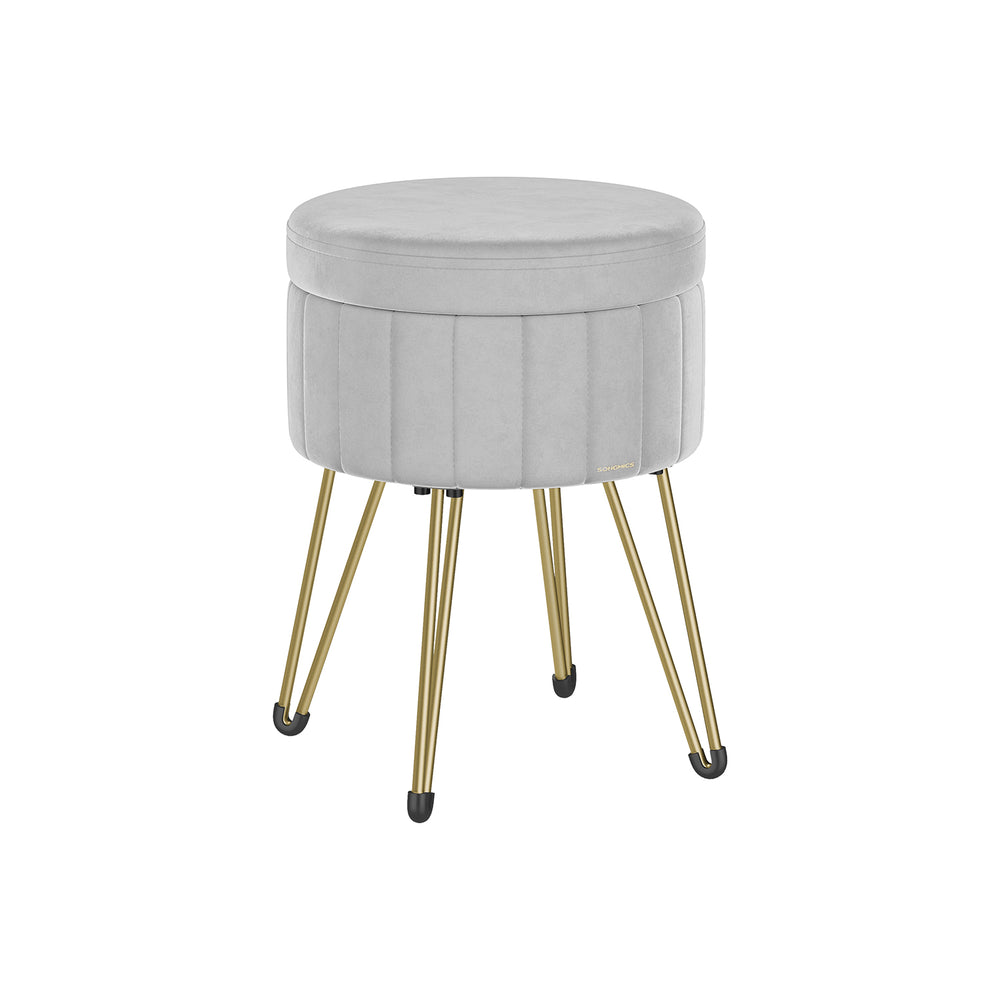 SONGMICS Ronde fluwelen kruk met opbergruimte 4 metalen poten