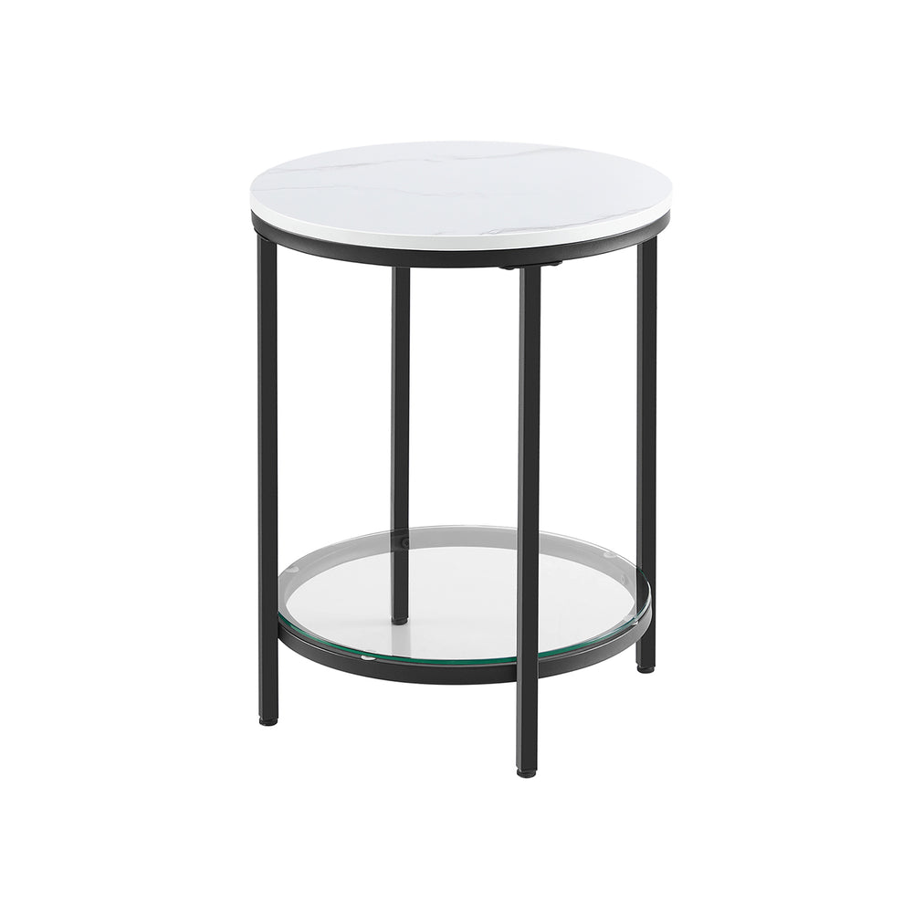 VASAGLE Ronde bijzettafel met 2 niveaus in gemarmerd wit en zwart