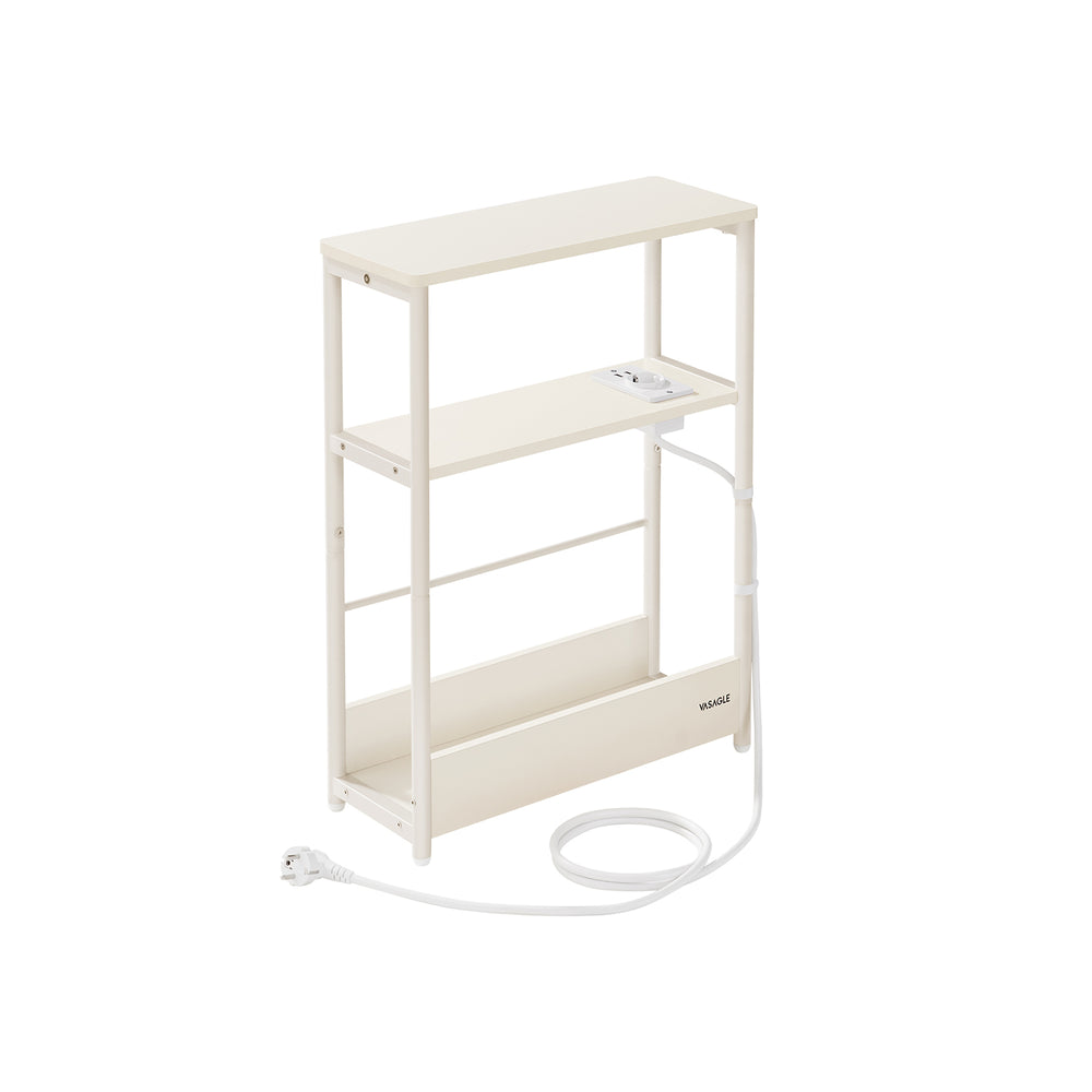 Fijne bijzettafel met 3-laags stekkerdoos Beige
