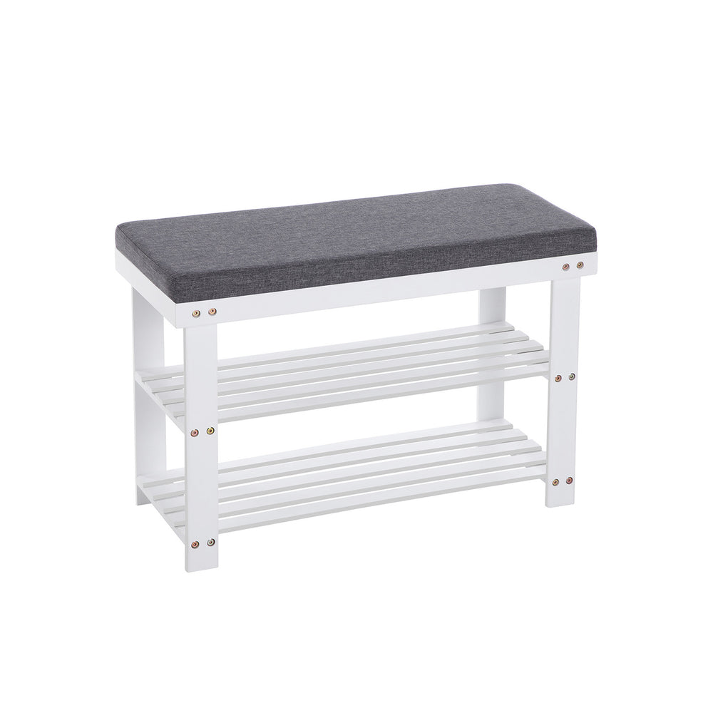 Bamboe schoenenbank met 2 niveaus belasting 150 kg 71 x 29 x 49 cm wit en grijs