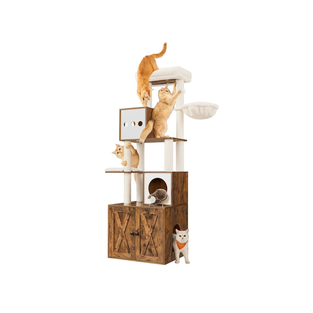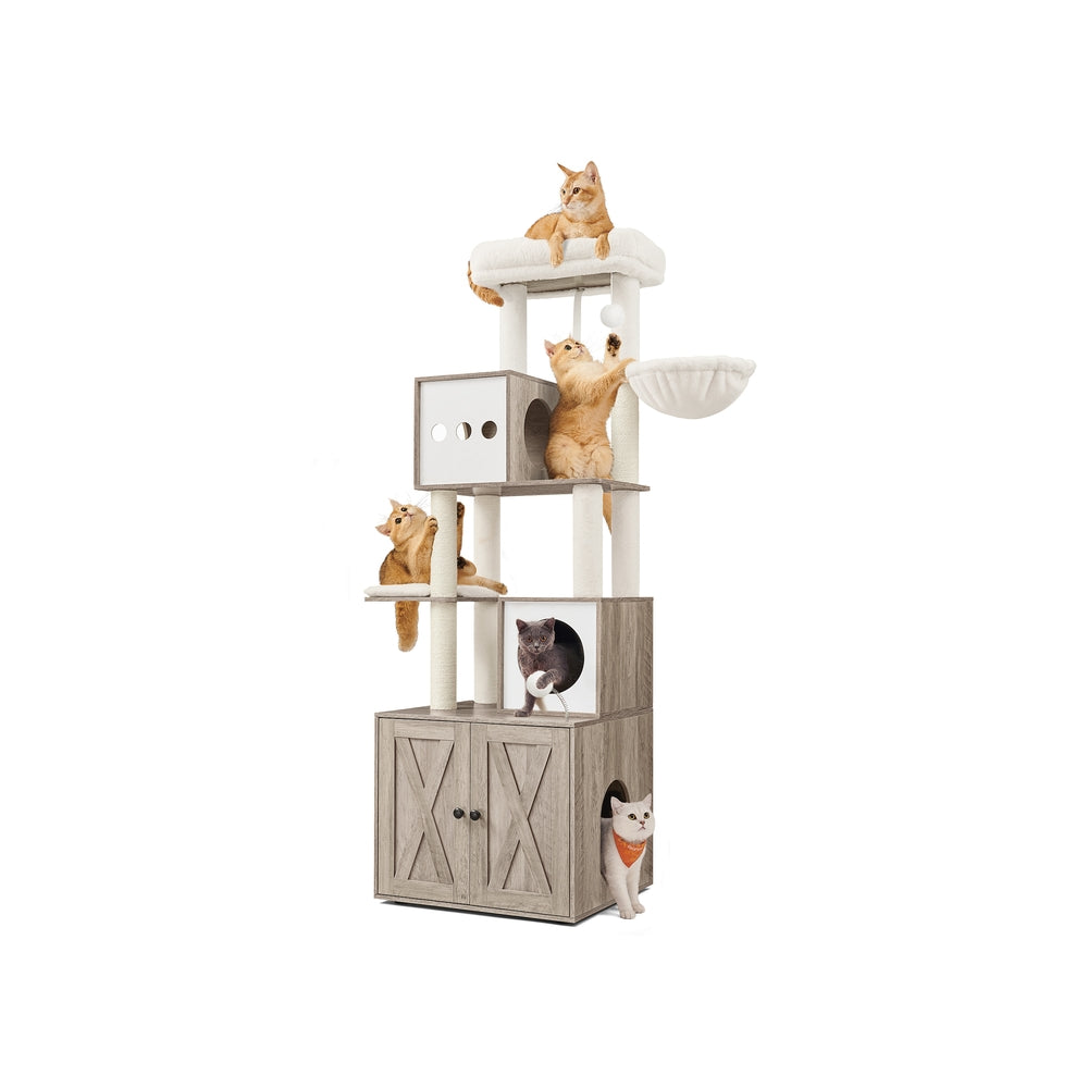 Krabpaal van 185 cm met moderne kattenbakafdekking