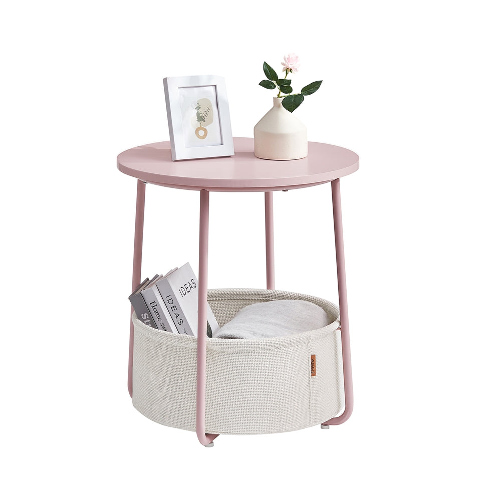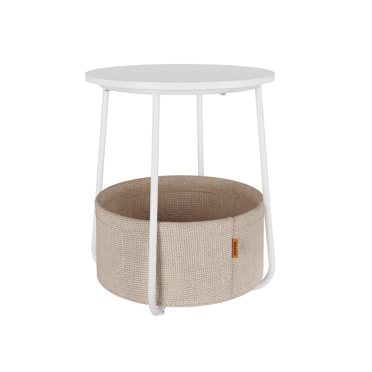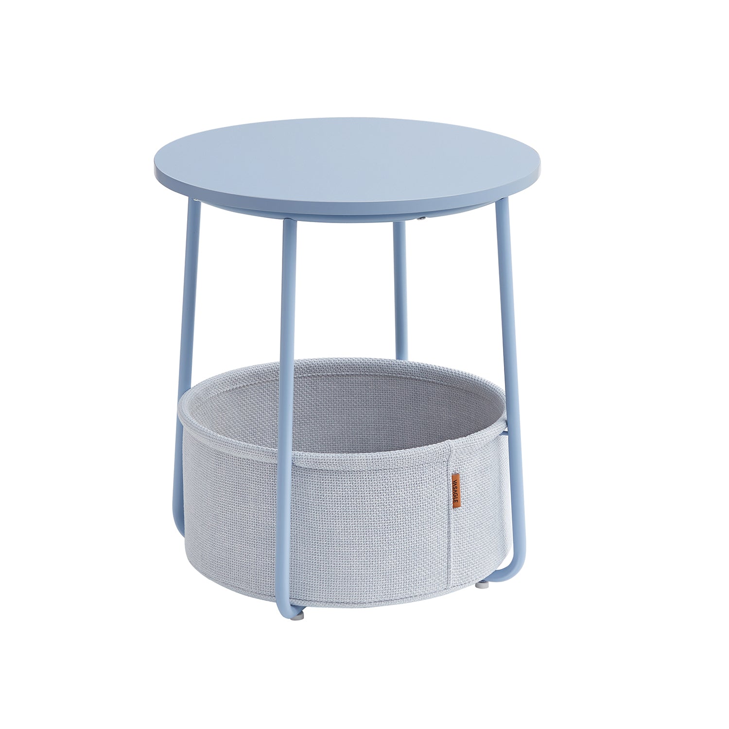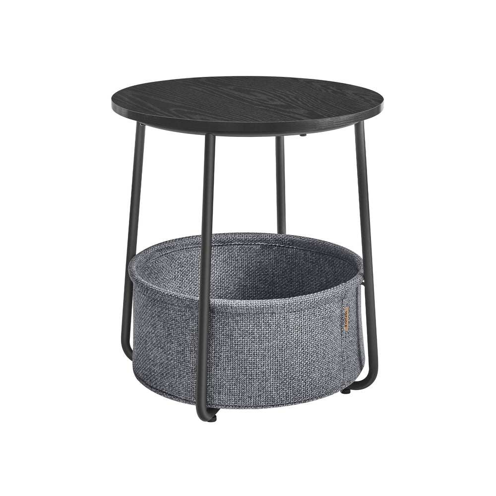 Ronde salontafel met beboste zwarte en donkerturquoise mand