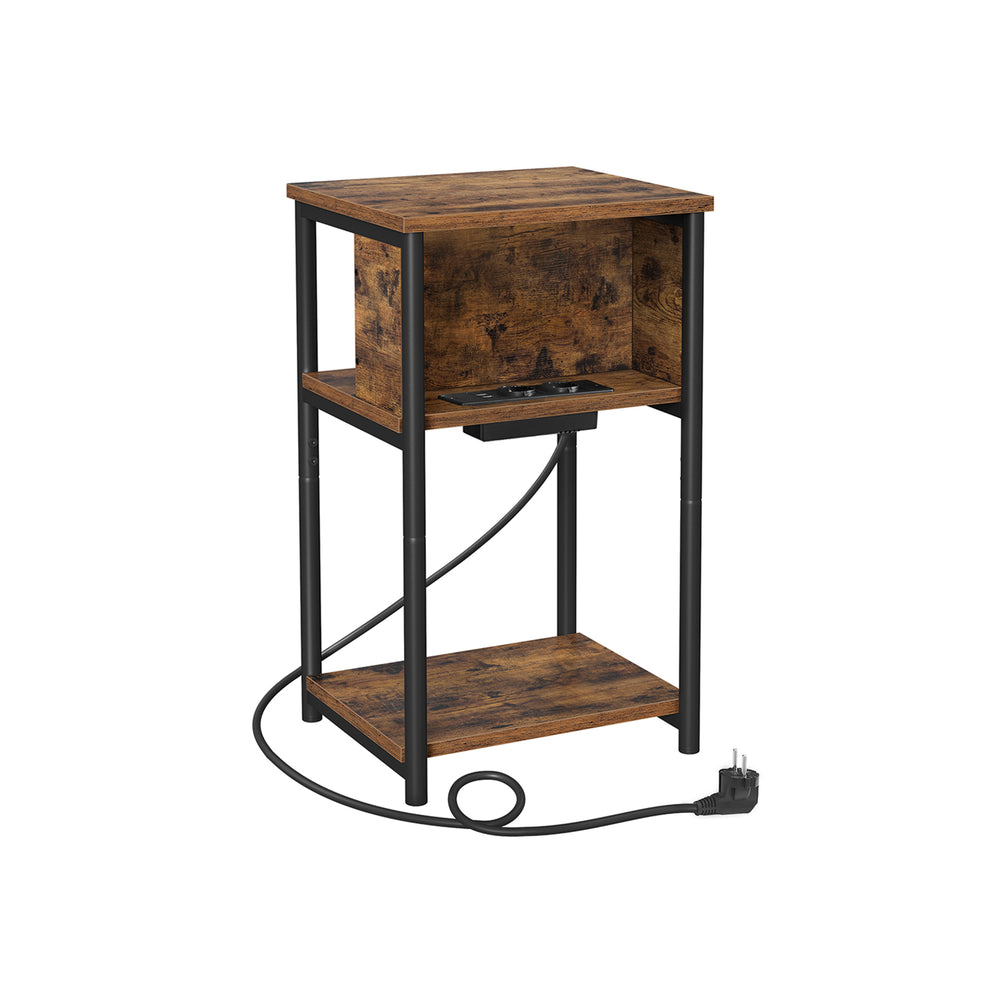 SONGMICS Table d'appoint avec multiprise marron rustique noir